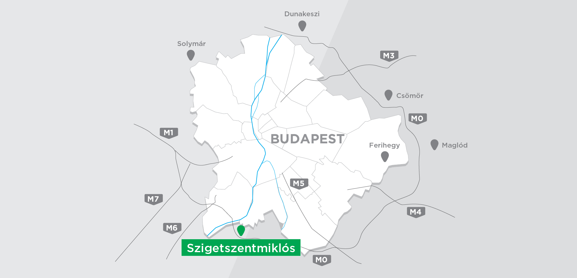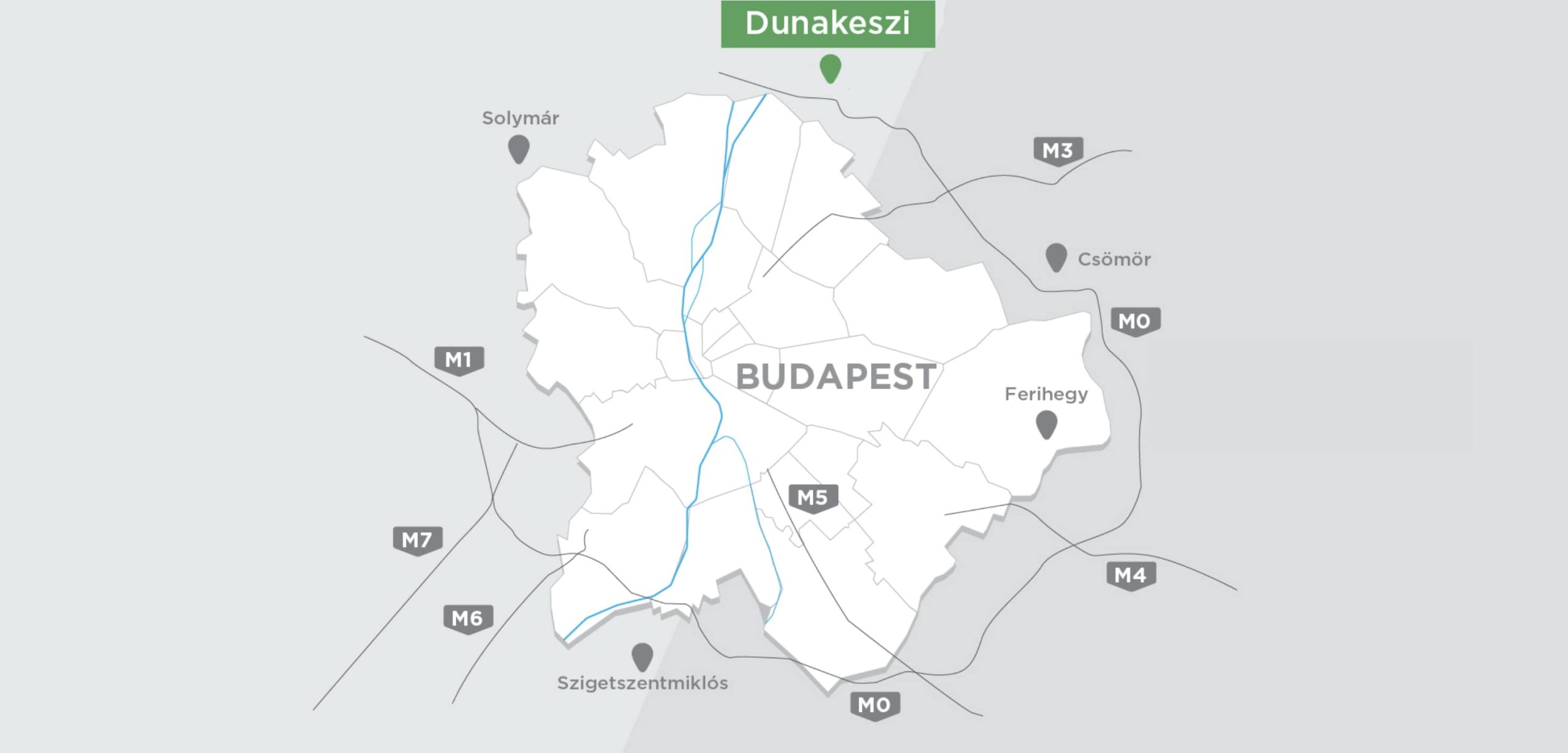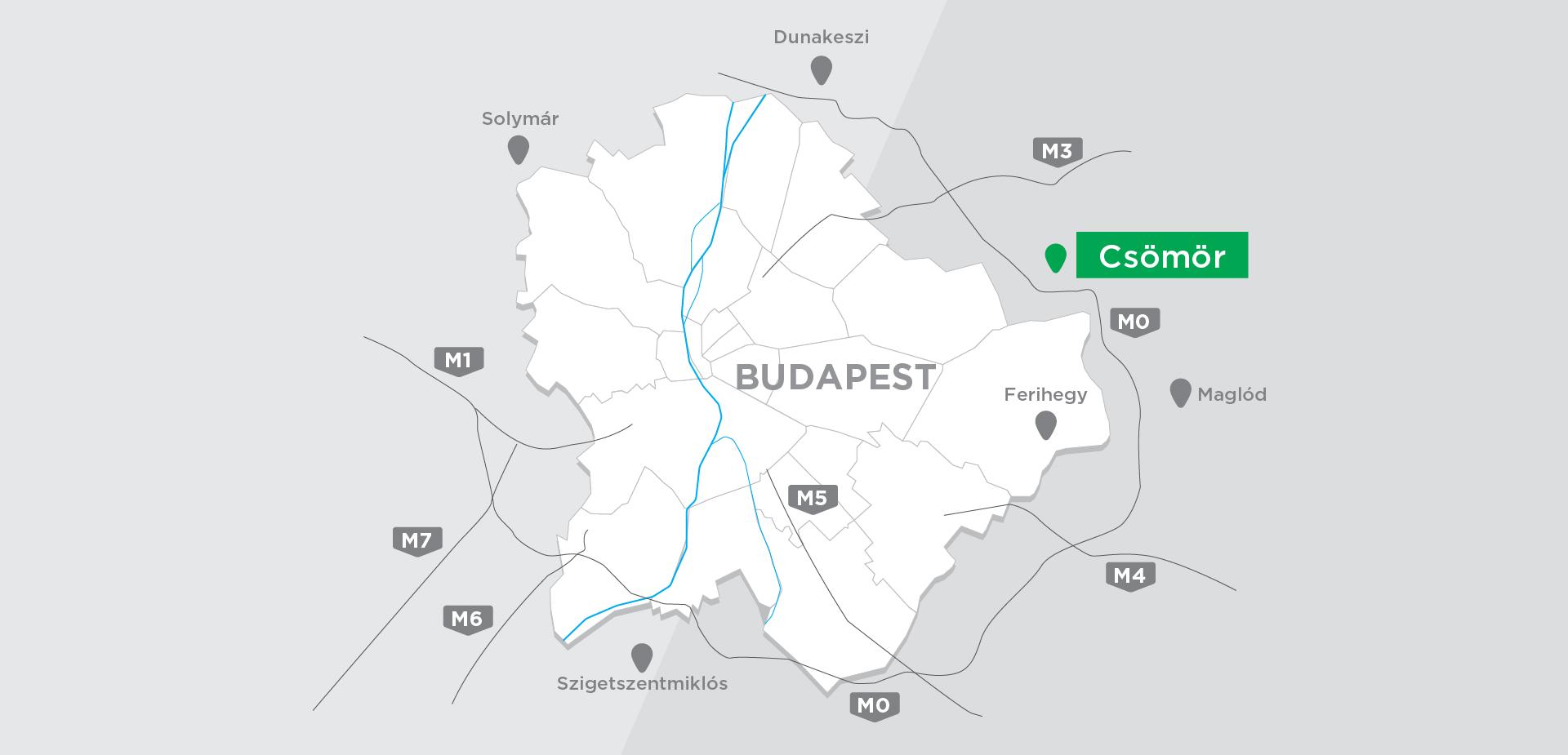 The development area is located next to the M0 motorway, near Háros road and II. Rákóczi Ferenc road connecting Szigetszentmiklós and Csepel, in the Auchan Commercial Park. It is surrounded by the Auchan hypermarket, Bauhaus, various industrial and commercial sites, and the Leshegy Industrial Park. The internal road network of the commercial park passes in front of the group of plots, where the utility backbones are available, but depending on the plot allocation, internal road construction works may still be required at individual plots.