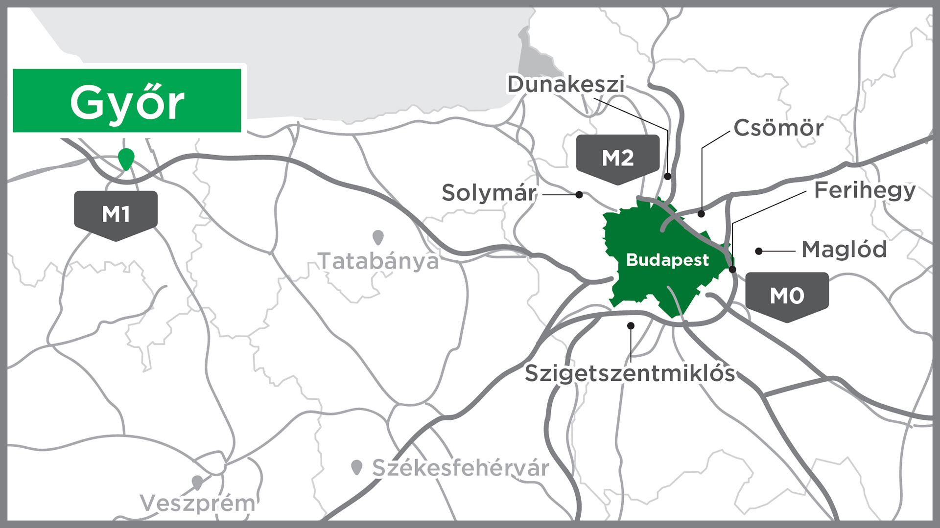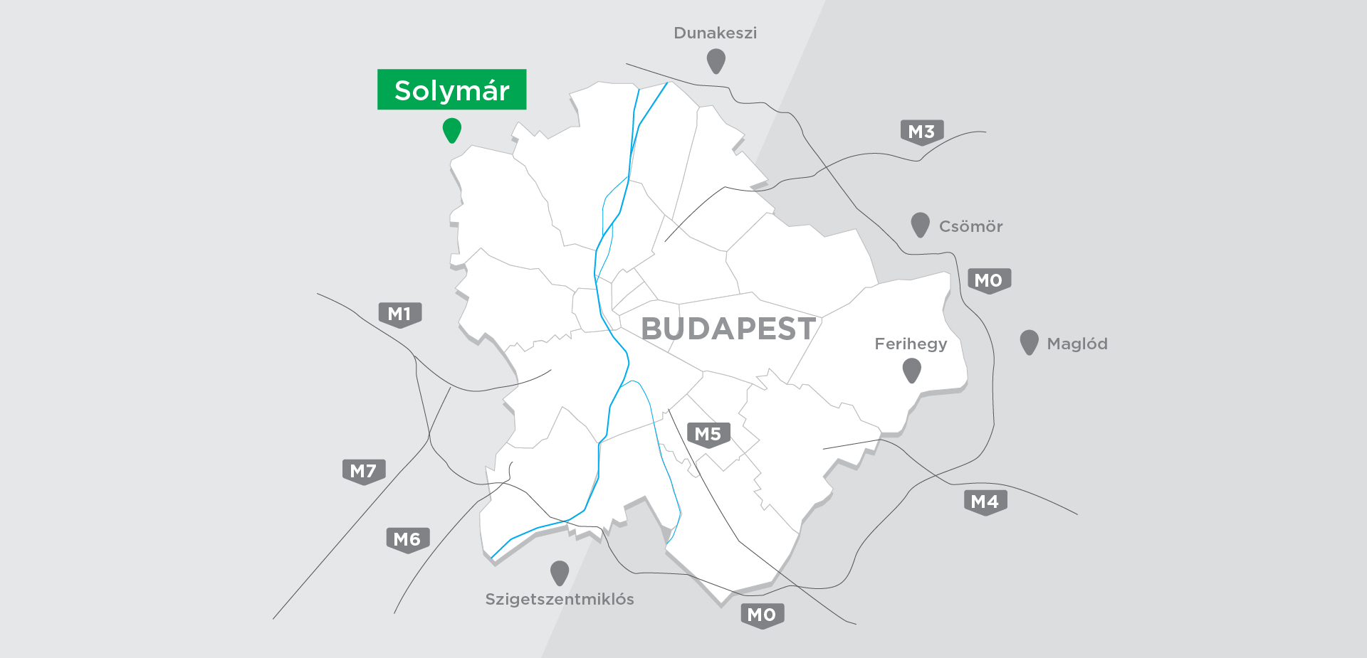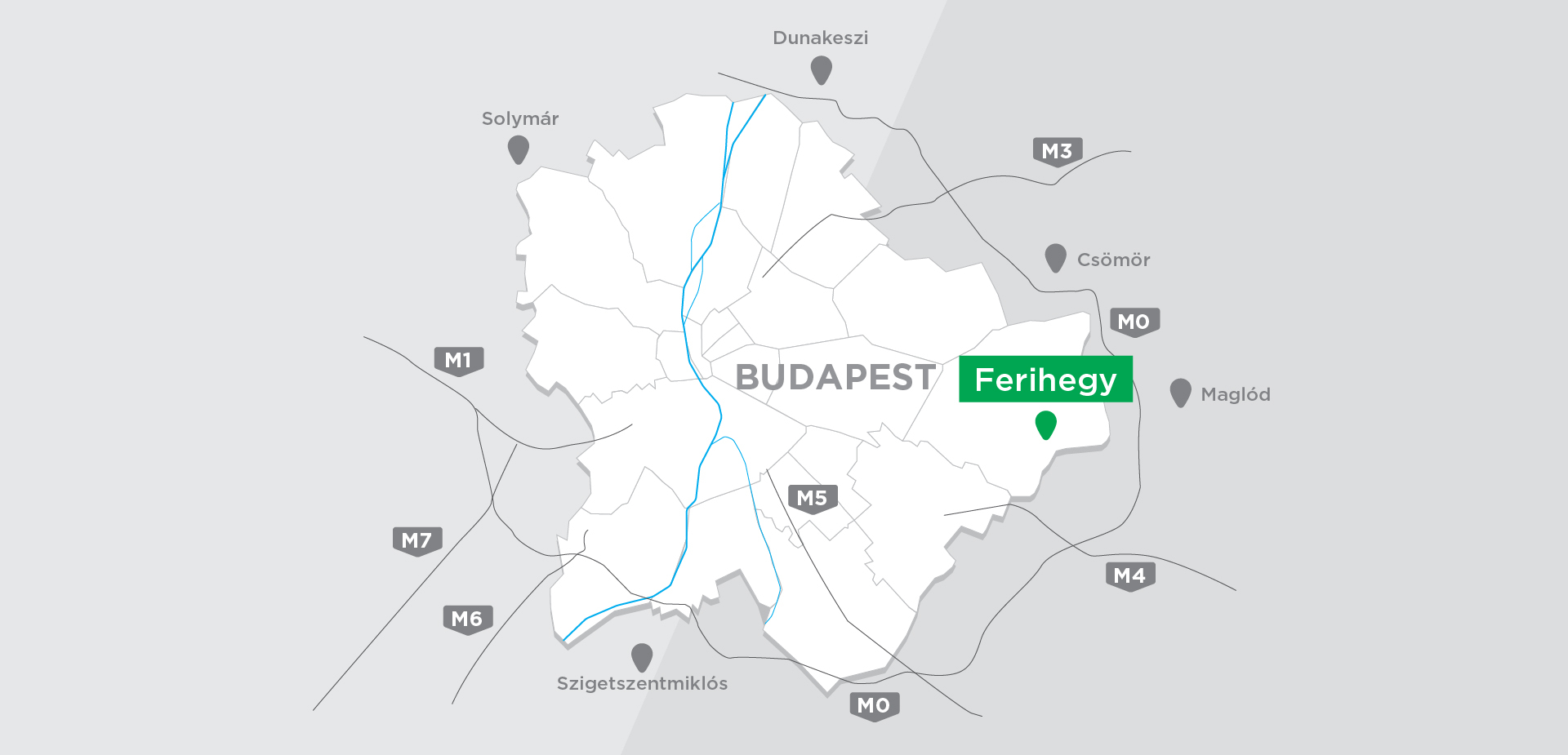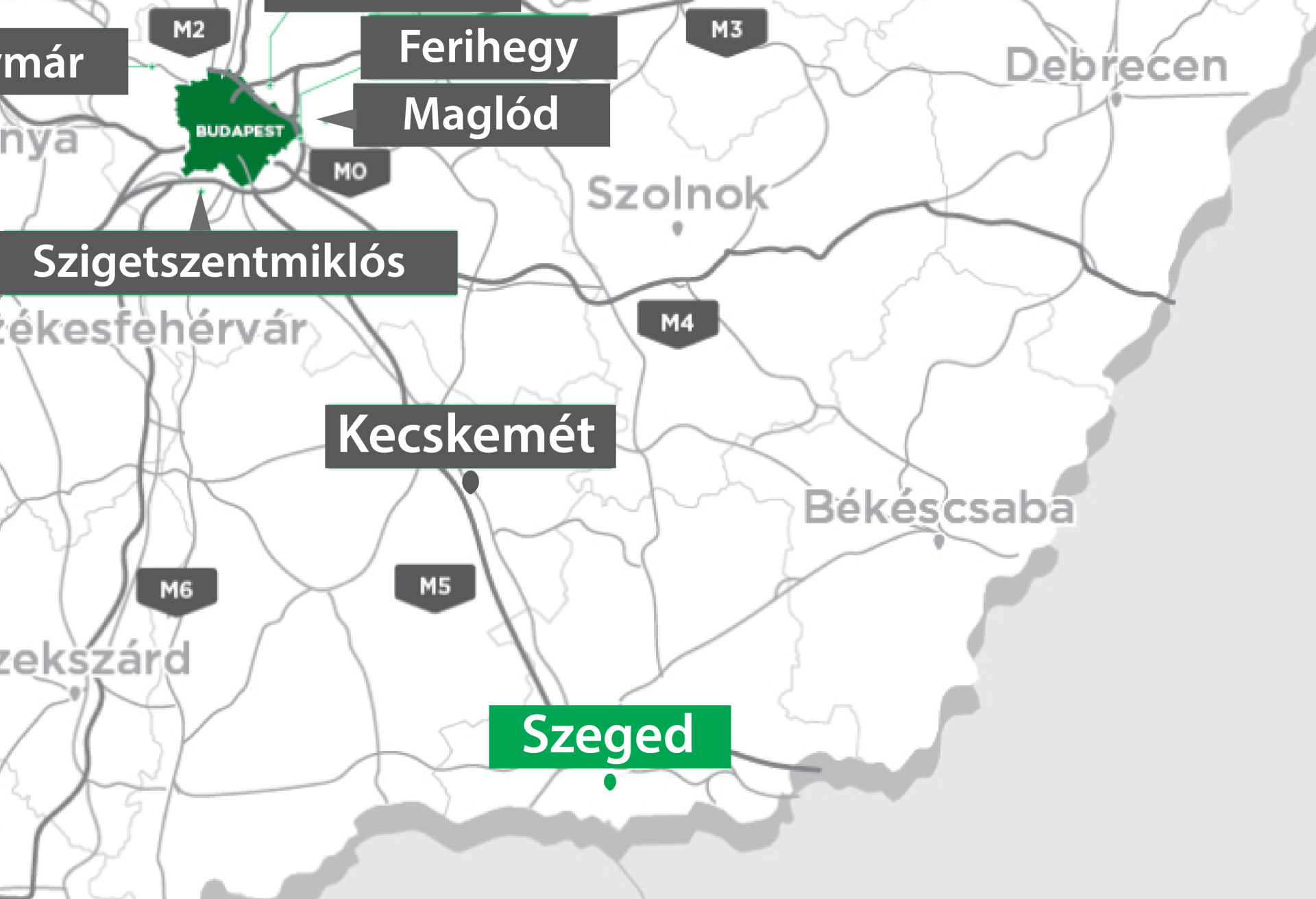 The development area is located next to the M0 motorway, near Háros road and II. Rákóczi Ferenc road connecting Szigetszentmiklós and Csepel, in the Auchan Commercial Park. It is surrounded by the Auchan hypermarket, Bauhaus, various industrial and commercial sites, and the Leshegy Industrial Park. The internal road network of the commercial park passes in front of the group of plots, where the utility backbones are available, but depending on the plot allocation, internal road construction works may still be required at individual plots.